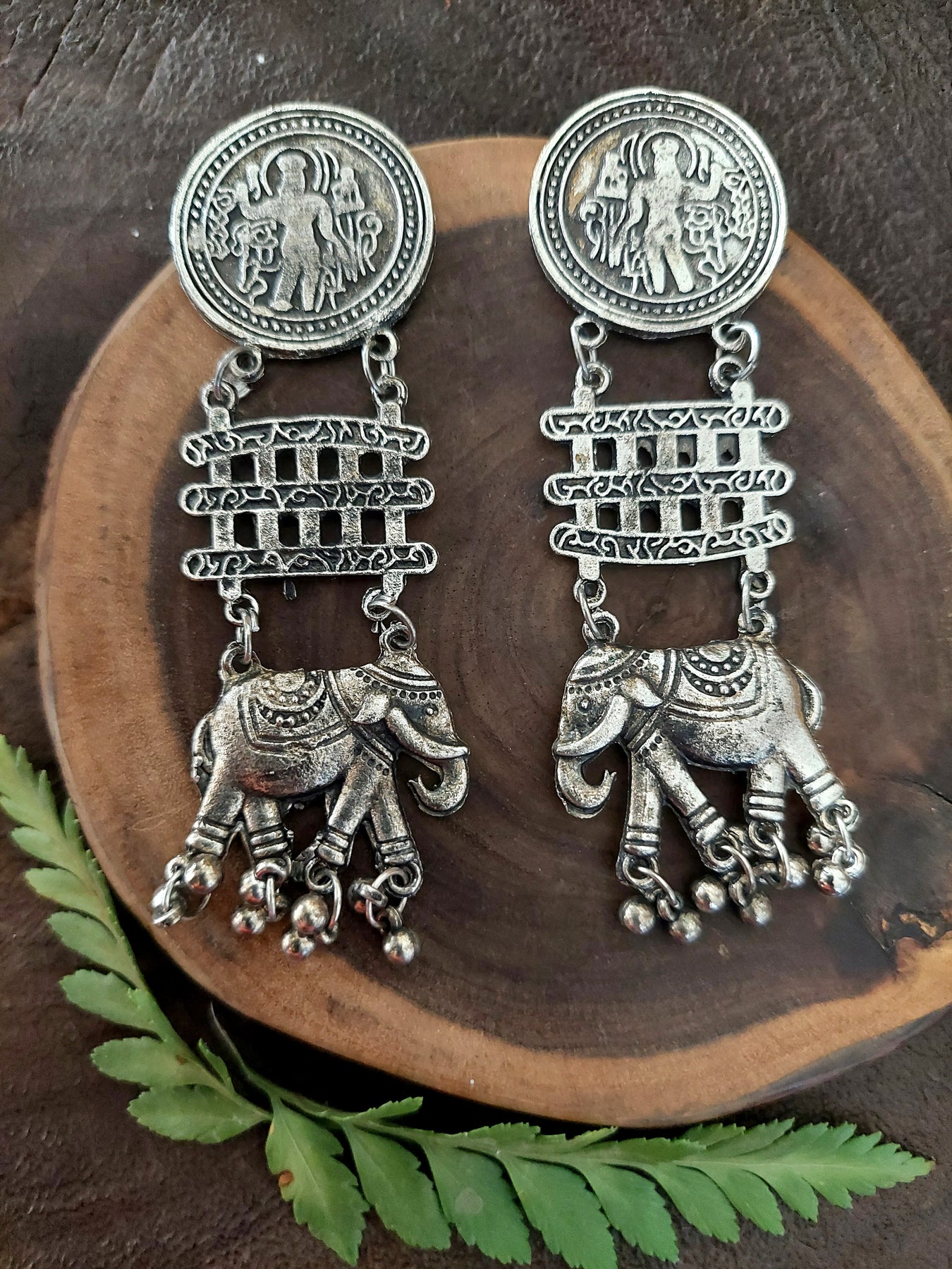 An elephant earring set in the traditional style enhances your beauty and accentuates the sense of fashion. With its regal appearance and antique finish, the piece exudes individuality. A fashionable yet traditional earring that may be worn and styled with a variety of outfits.