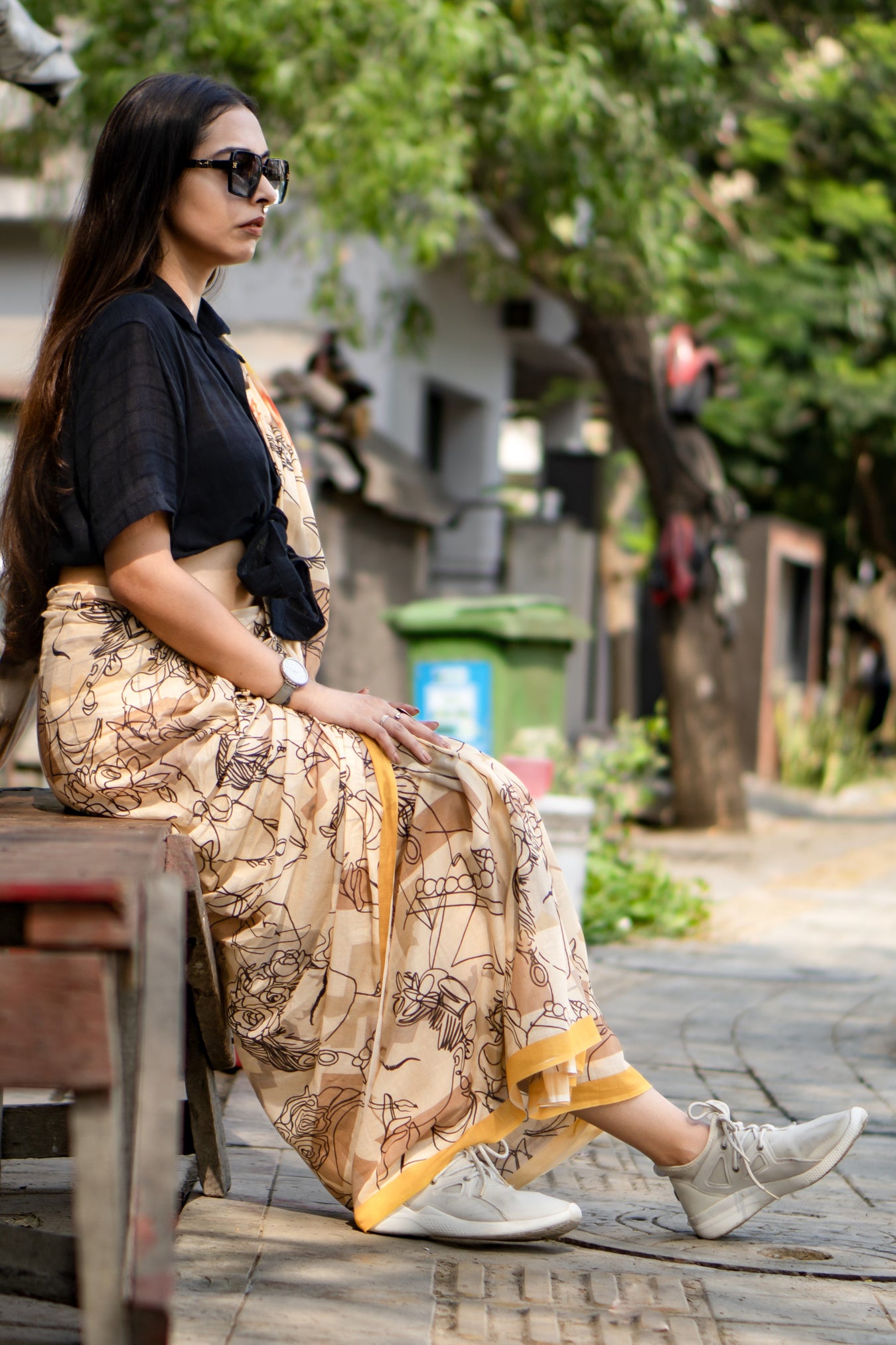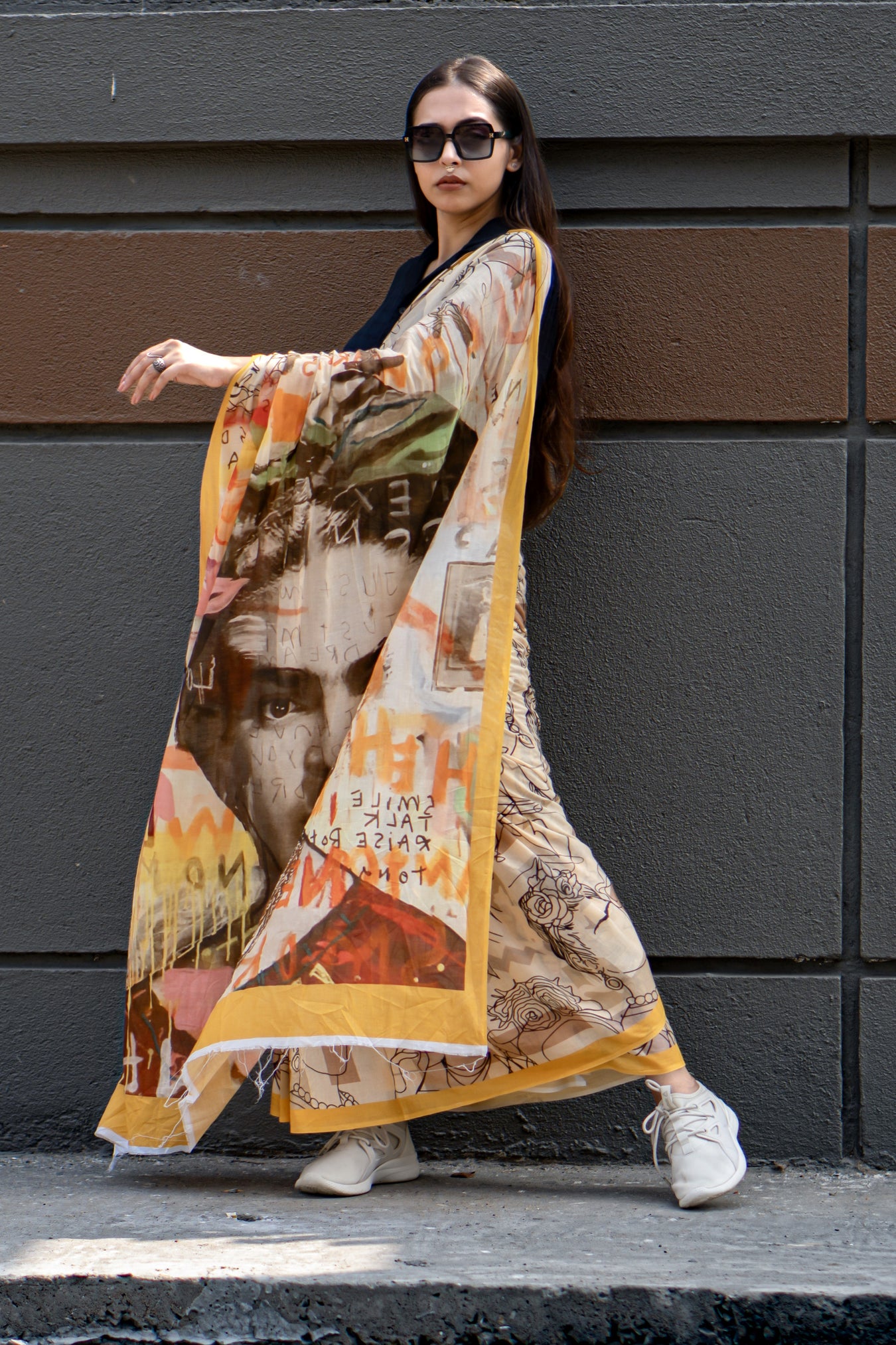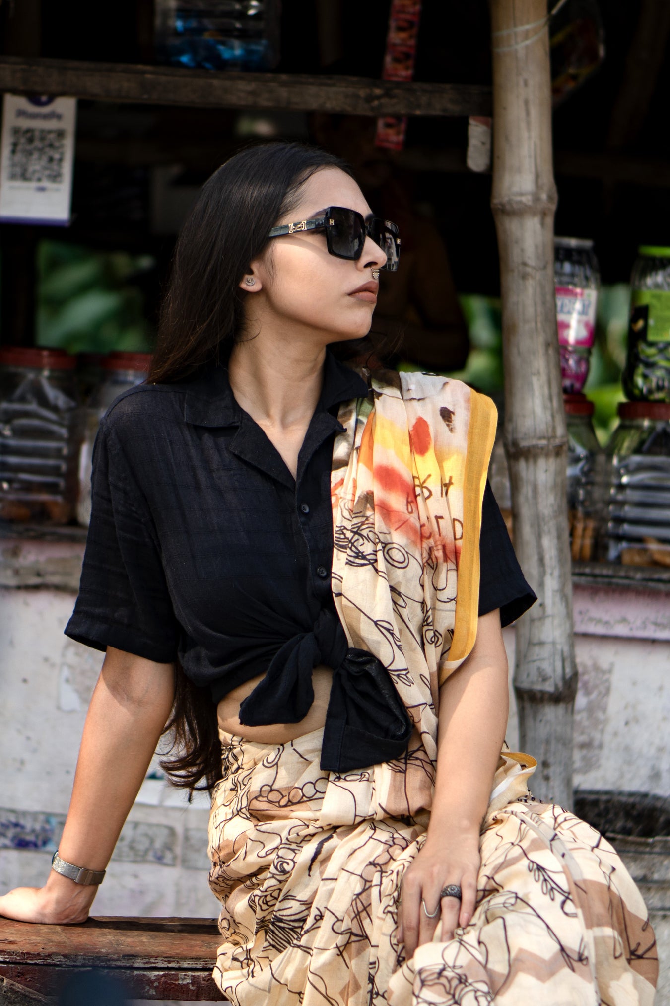 Colour: BEIGEFabric: MulmulPattern and print: Peach Floral designs printed on natural mulmul saree with an Beige base. The classic attire is one unique piece making it stand out among others. The saree brings out the softness from within and natural beauty, making it a statement look.