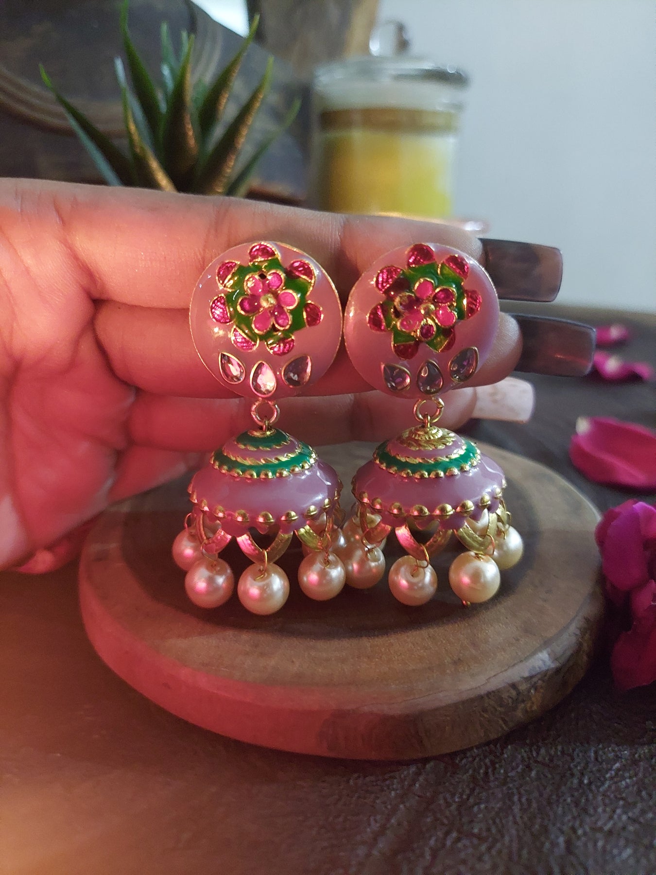 Intricate and detailed design Earrings with an antique pastel finish. The piece has an antique finish with intricate carved designs all over it. Wear it with your favorite outfit to show off the one-of-a-kind pair.