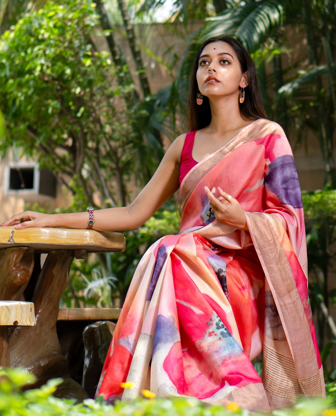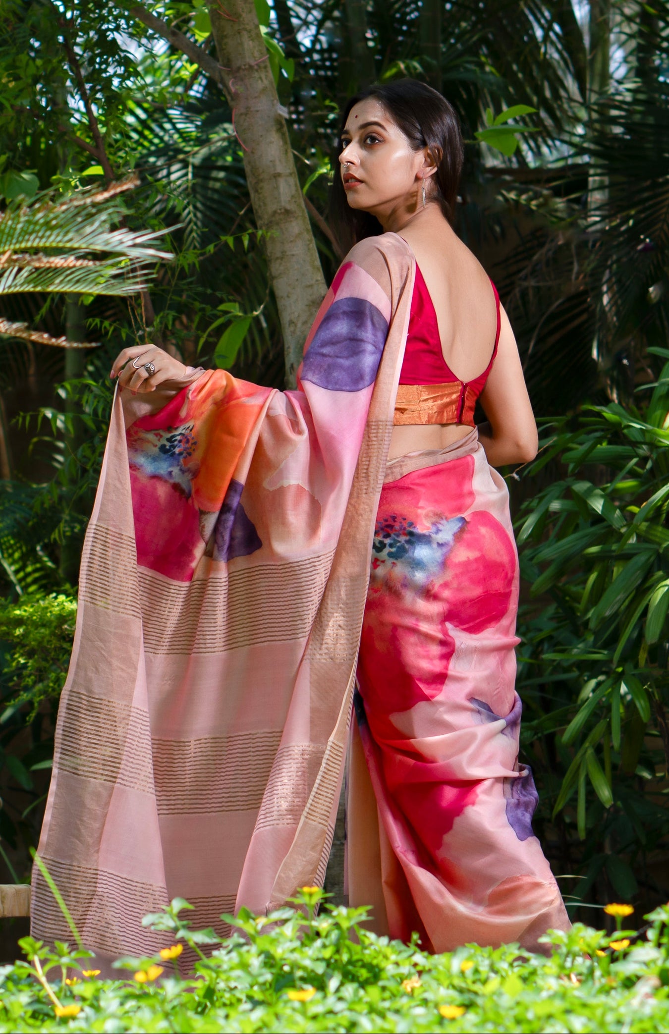 Pure tussar zari border all over multicolord floral design