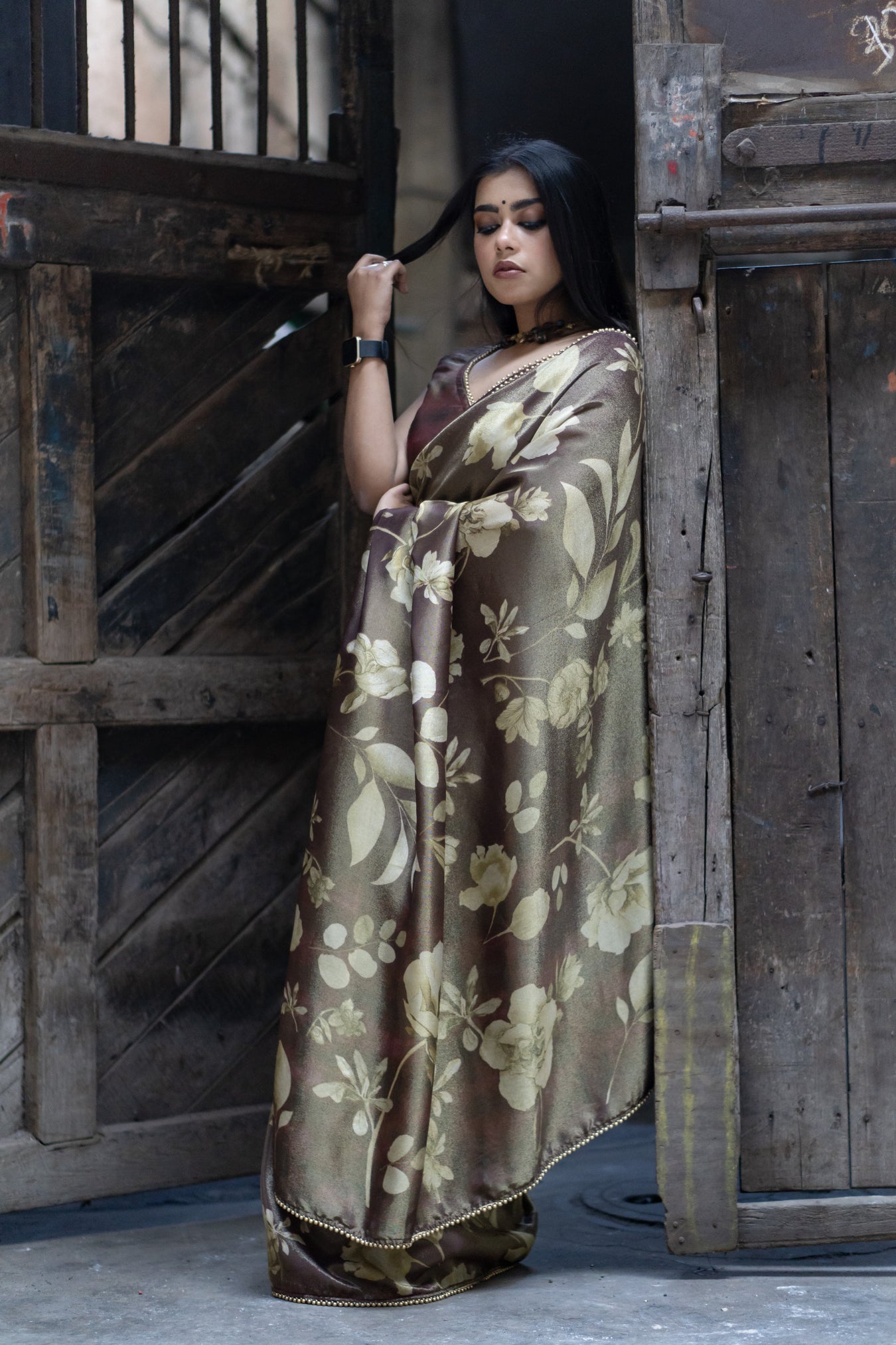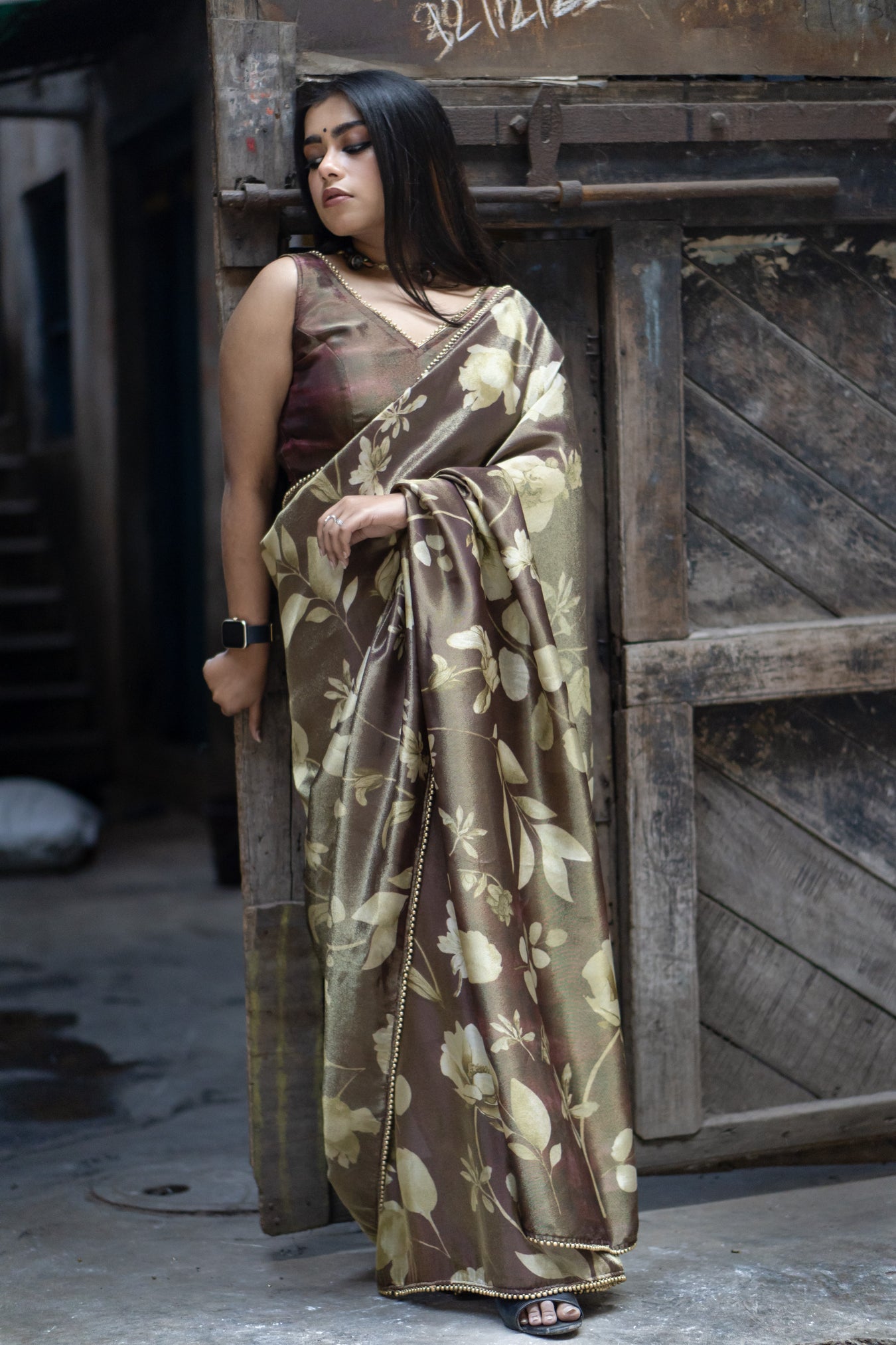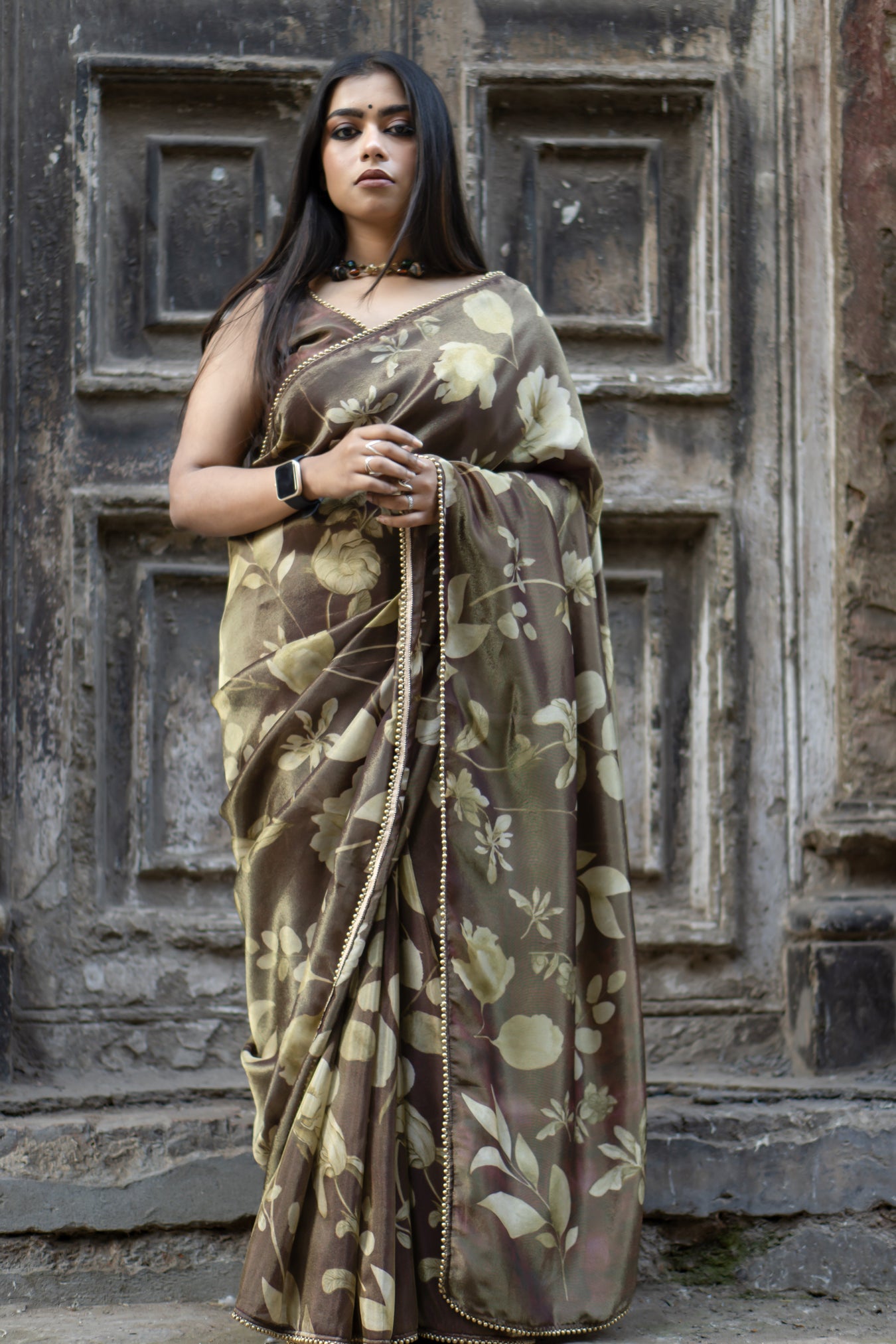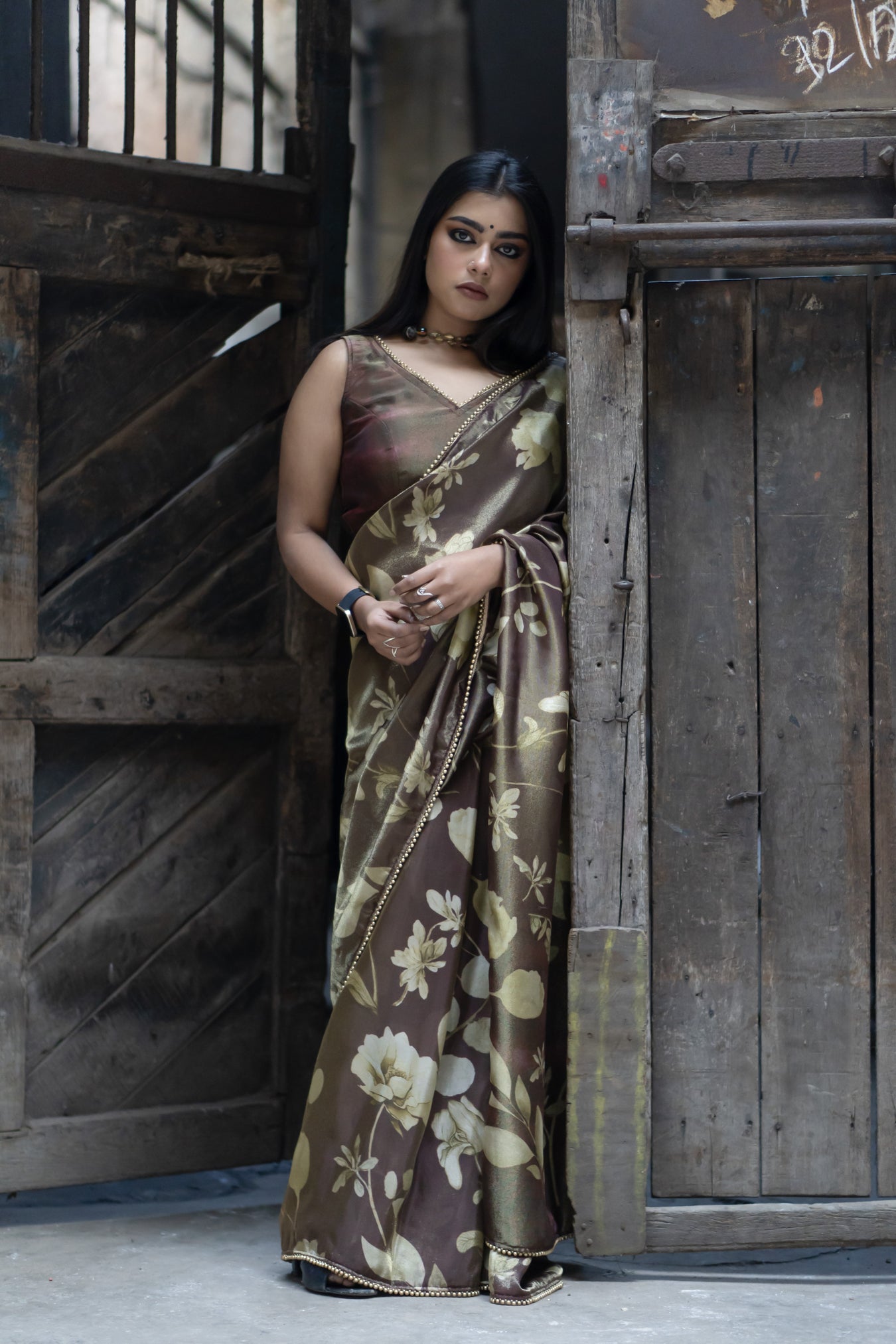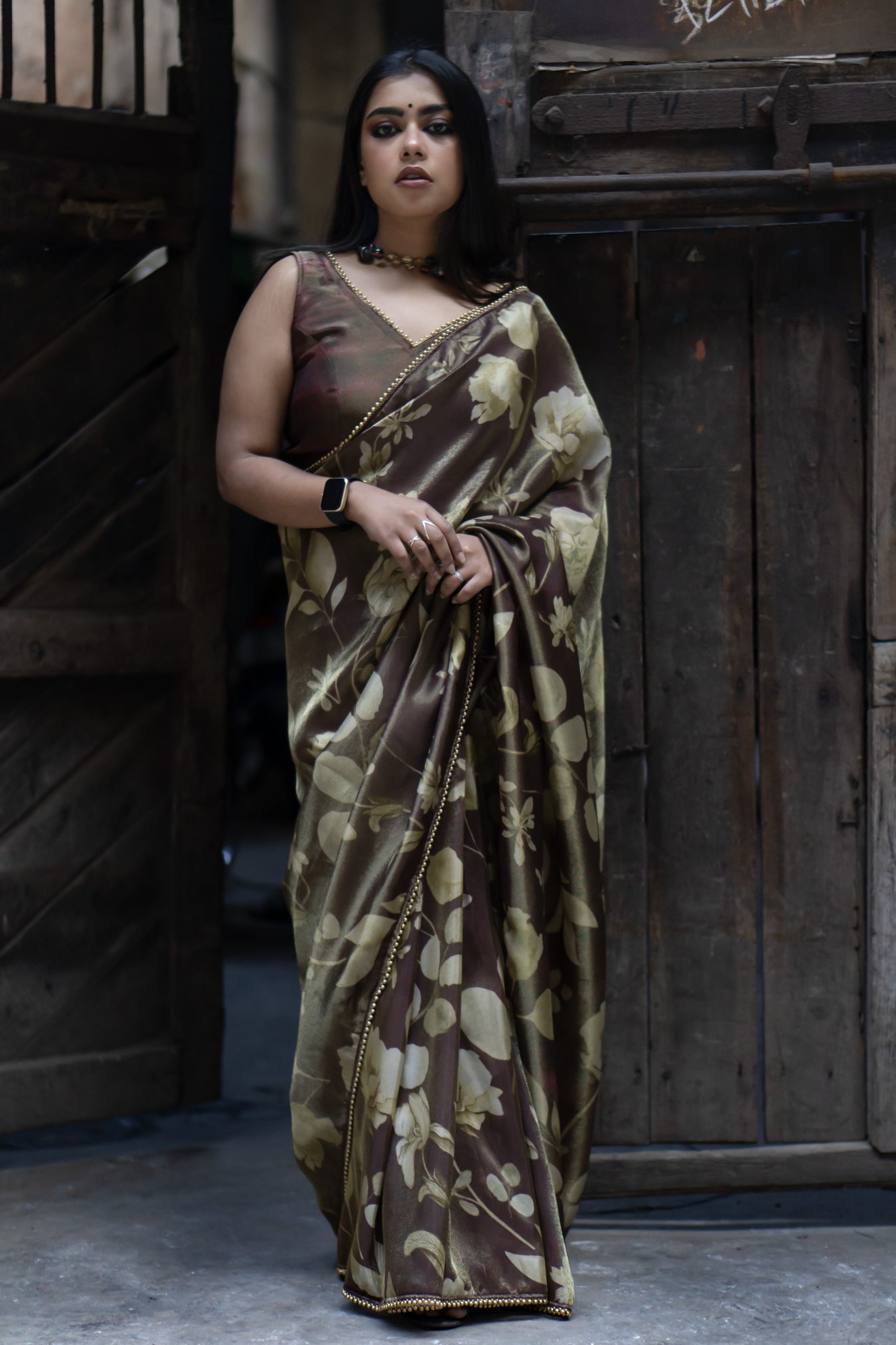 Size: S: 5.50Mtr B: 0.80MtrColour: MEROONFabric: Tissue OrganzaPattern and print: "The Meroon color organza tissue saree is elegantly adorned with a traditional floral jal design, creating a vibrant yet sophisticated look that effortlessly captures attention." Â Pack contains: 1 Saree, 1 BlouseCare instructions: Dry wash