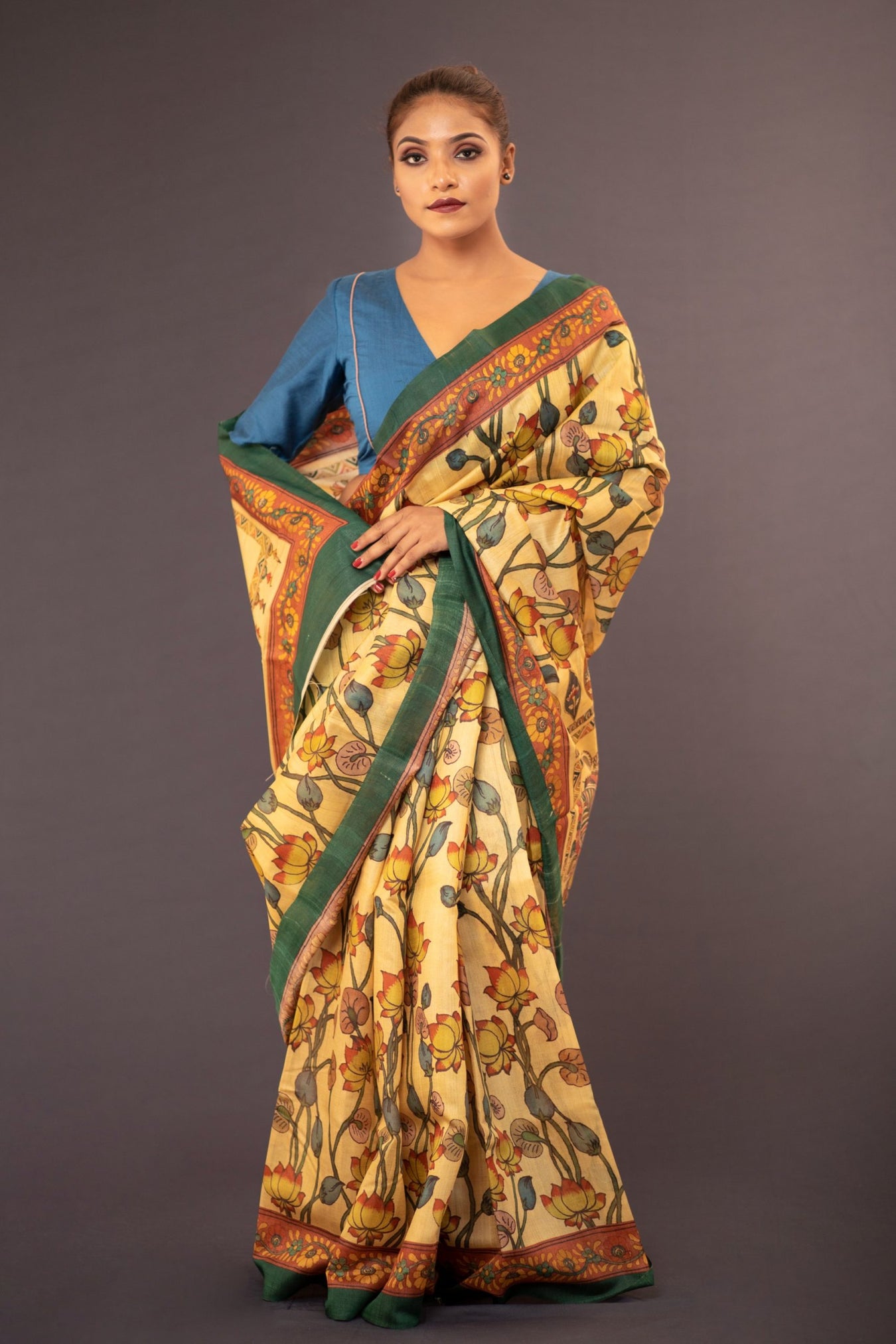 Silk purity: Pure Tussar SilkPack contains: 1 Saree, 1 BlouseCare instructions: Dry wash