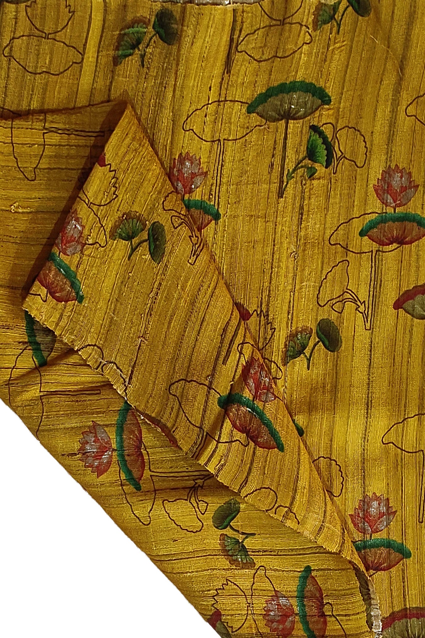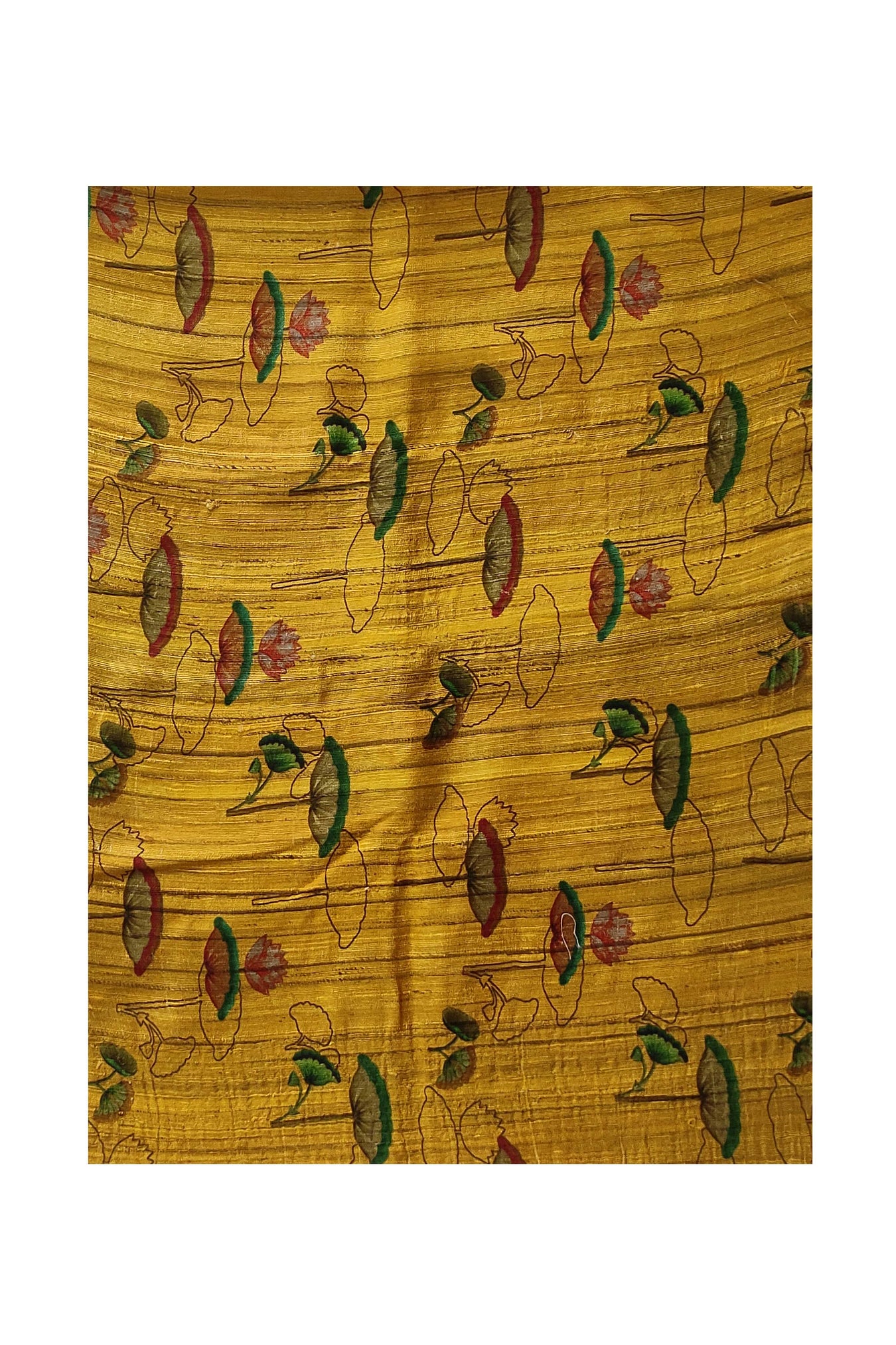 Bright golden yellow Tussar Gheecha silk stole with Pichwai motif all over. The botanical Pichwai prints give an essence of nature and foliage, and is highlighted on the bright yellow base. An epitome of classic traditional look, can be flaunted anywhere with grace and beauty. Â