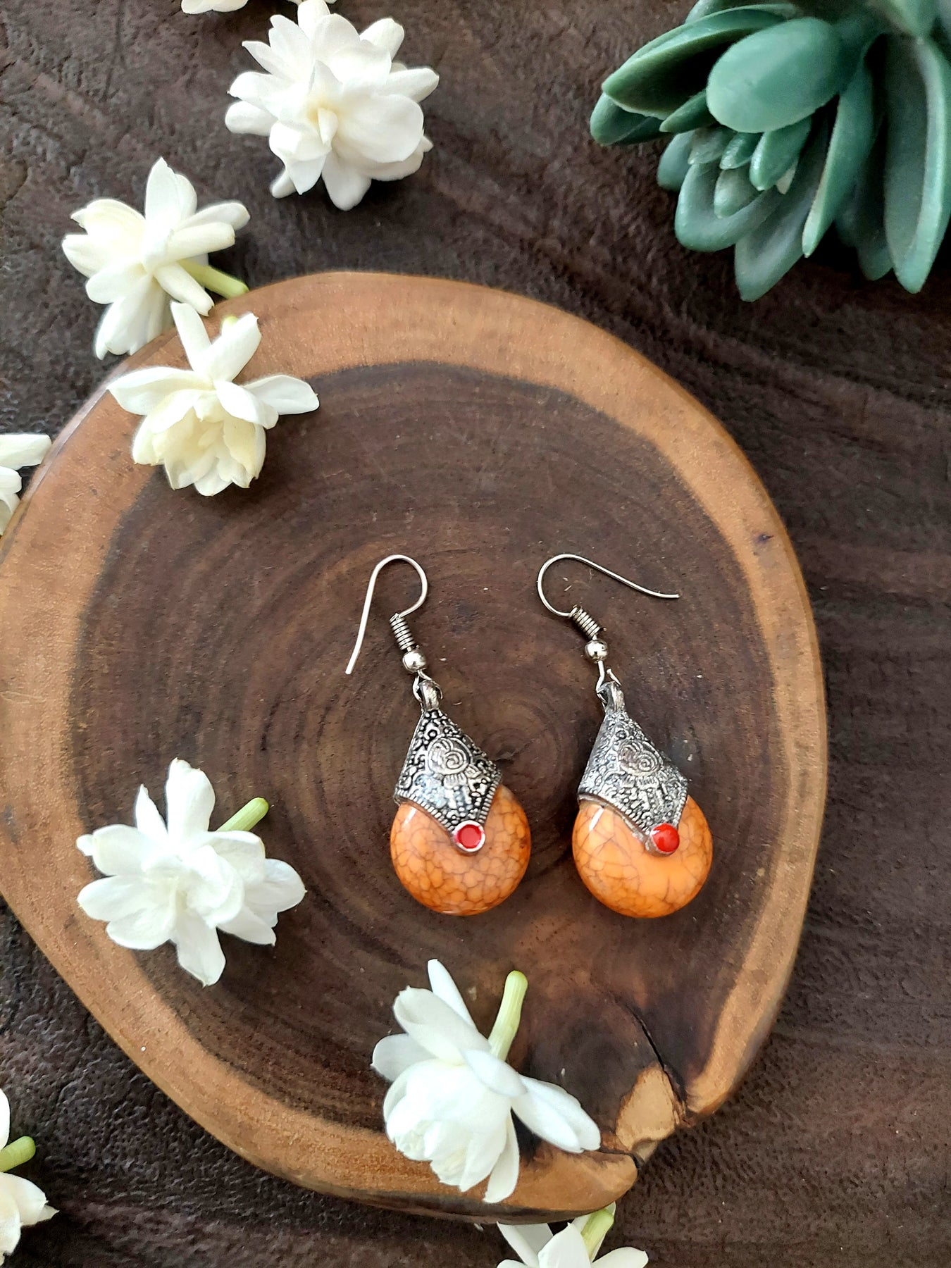Earring with a textured stone drop in orange. Because it is simple and light to wear, it is contemporary and unique. Wear it with any traditional or fusion attire to complete your look.
