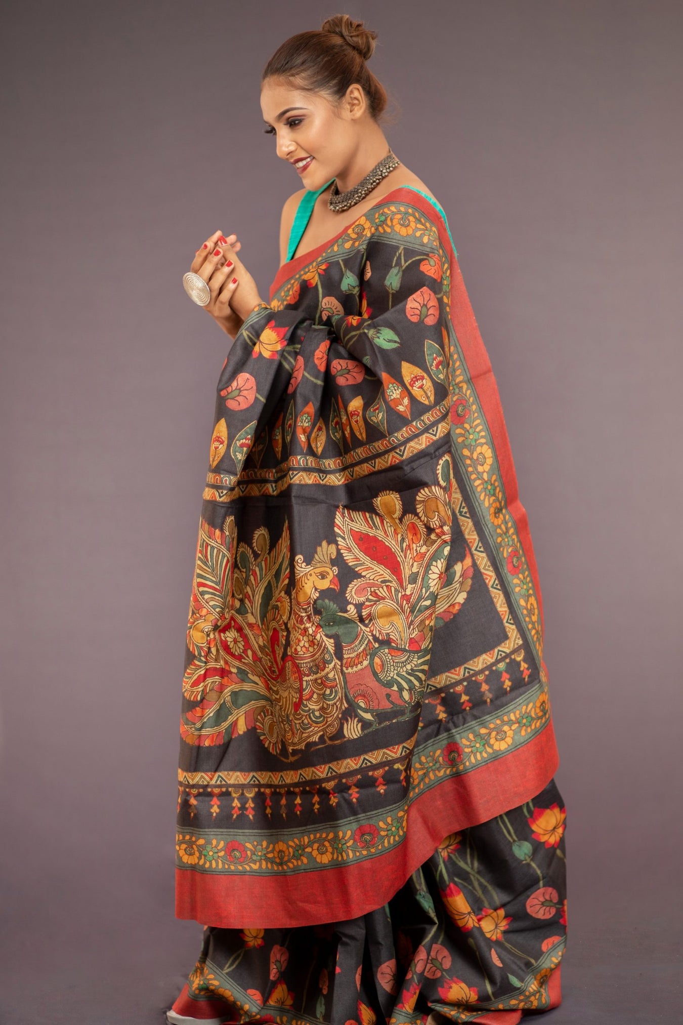 Draping yourself in the Padyum saree allows you to embrace the timeless charm of Kalamkari art and make a bold fashion statement. Elevate your style and captivate hearts with the enchanting Padyum saree.