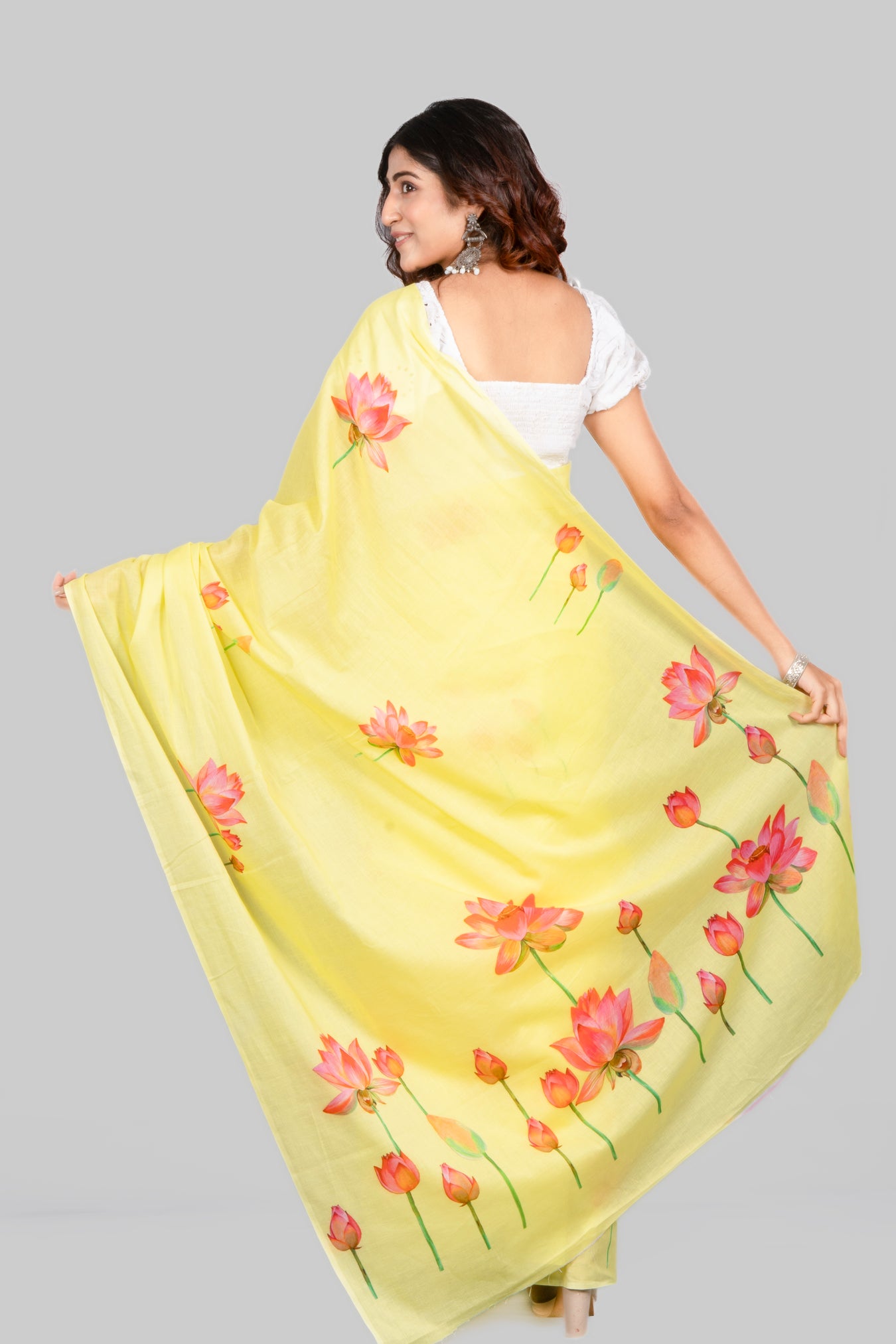 Step into the ethereal world of elegance with our Digital Floral art Mulmul Saree! Delicately crafted with intricate floral designs this saree is a timeless beauty that stands out effortlessly.